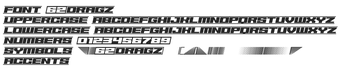 62 Dragz เป็นตระกูลฟอนต์แสดงที่มีพลังงานสูงออกแบบมาสำหรับ Windows ซึ่งมีความเร็วและการเคลื่อนไหวผ่านรูปทรงที่แหลมคมและเอียงไปข้างหน้า มันมีตัวอักษรที่หนาและบล็อกที่มีเส้นฐานที่มีลักษณะเฉพาะใต้เส้น ทำให้รู้สึกถึงโมเมนตัม ตระกูลฟอนต์นี้รวมสไตล์ต่างๆ ตั้งแต่น้ำหนักที่เป็นของแข็งไปจนถึงลายทางและการออกแบบที่มีขอบ ทำให้สามารถสร้างเลเยอร์ที่สร้างสรรค์และเอฟเฟกต์ภาพที่โดดเด่น เหมาะสำหรับโลโก้ แบรนด์กีฬา และโปสเตอร์ที่ดึงดูดความสนใจ มันจับความตื่นเต้นที่เต็มไปด้วยอะดรีนาลีนซึ่งเหมาะสำหรับโครงการออกแบบสมัยใหม่